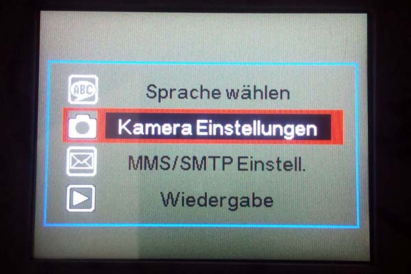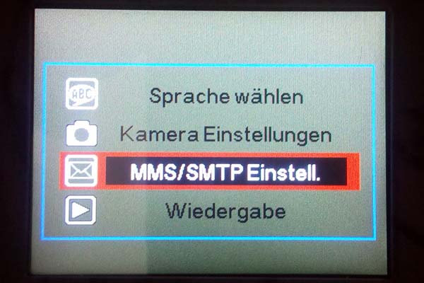 Über die Fernbedienung das Menü der Kamera öffnen und "MMS/SMTP Einstell." öffnen.