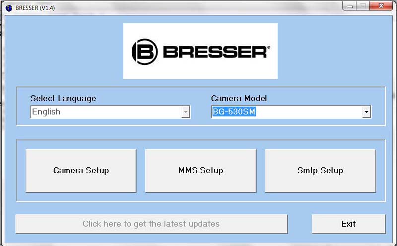 Mit MMSSetup kann man die verschiedenen GPRS Einstellungen vornehmen. Dieses Programm gibt es leider nur in englischer Sprache, aber mit unserer Anleitung ist das Anpassen der Einstellungen trotzdem kein Problem. Bei "Camera Model" müssen Sie die Modellbezeichnung der Bresser Wildkamera auswählen, in diesem Fall "BG-530SM". Da wir die Kamera Einstellungen direkt auf der Kamera angepasst haben, ignorieren wir den Punkt "Camera Setup" genauso wie "MMS Setup".