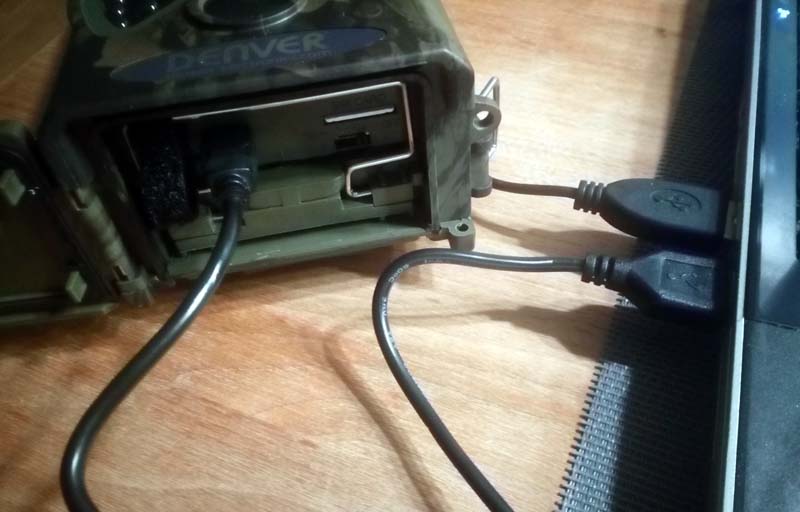 Die Wildkamera mit Hilfe des im Lieferumfang enthaltenen USB-Kabel an den PC anschließen und den Betriebsschalter auf die mittlere Stellung (Setup) stellen. Die Kamera baut jetzt eine Verbindung zu Ihrem Rechner auf und wird als Wechseldatenträger aufgeführt.