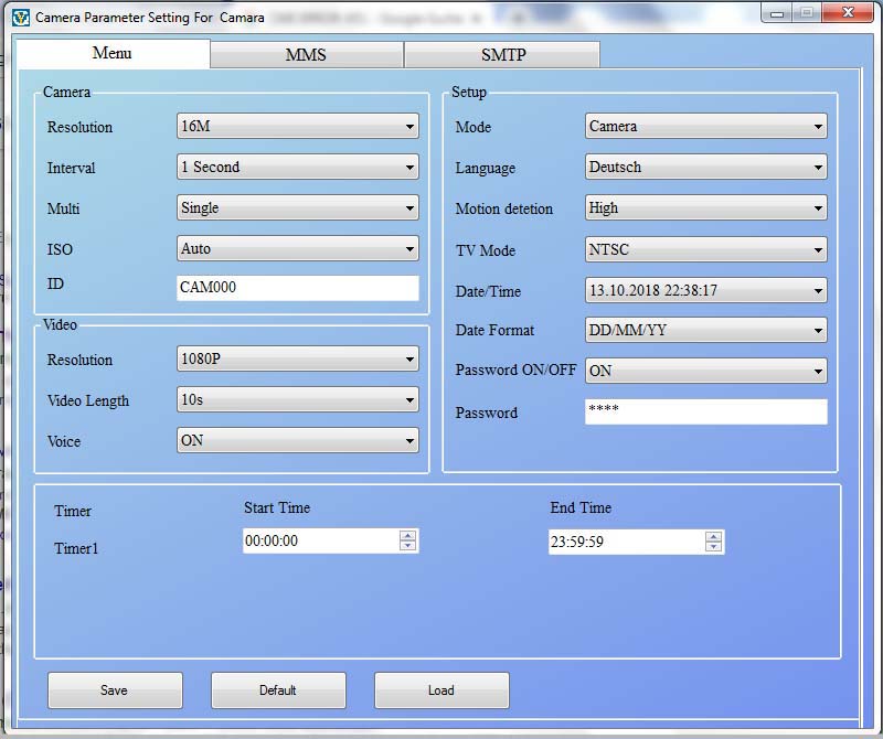 Die Wildkamera Denver WCM-5003MK3 lässt sich mit dem kostenlosen Programm MMSConfig konfigurieren. Dieses Programm finden Sie auf der kleinen CD im Lieferumfang, können es aber auch bei uns runterladen. Das Programm muss nicht installiert werden und kann einfach geöffnet werden. Zudem haben wir eine voreingestellte Konfigurationsdatei zum Download bereitgestellt. Hier sind viele Parameter bereits vorkonfiguriert.
