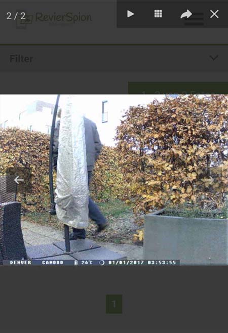 Wenn Sie diese Anleitung richtig befolgt haben, sollten die aufgenommenen Fotos der Wildkamera Denver WCM-8010 direkt auf die RevierSpion App übertragen werden. Stellen Sie den Betriebsschalter auf "ON" und stellen Sie die Kamera auf. Laufen Sie vor der Kamera her und warten ein paar Minuten. Haben Sie die RevierSpion App auf Ihrem Smartphone installiert, sollten Sie eine Benachrichtigung über ein neues Wildkamera-Foto bekommen. Kommt nichts an, kann es sein, dass die Wildkamera keinen Empfang hat, bitte den Standort wechseln. Gerade weil die Denver WCM-8010 eine integrierte Antenne hat, ist der Empfang oft etwas schlechter wie bei Wildkameras mit einer zusätzlichen Antenne.