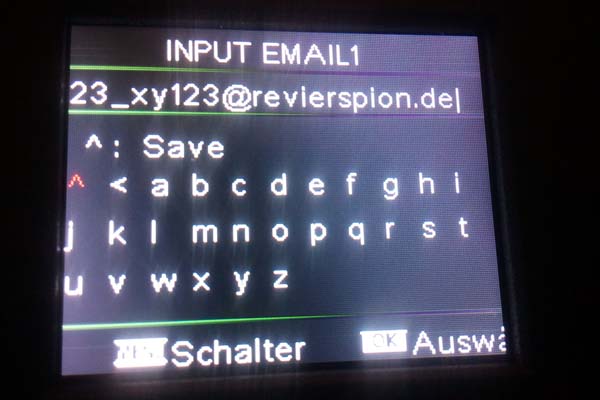 Bitte diese eMail-Adresse, in diesem Fall "123_xy123z@revierspion.de", vollständig unter "Email1" eintragen.