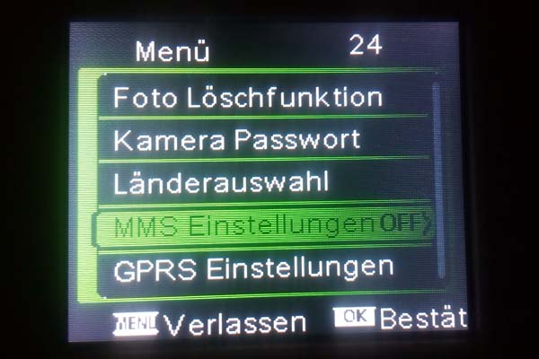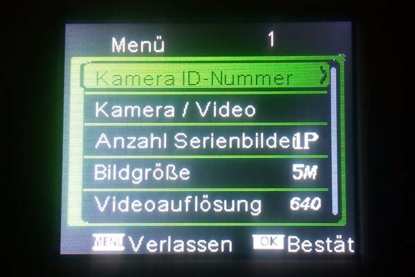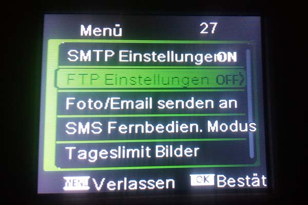Nachdem alle Einstellungen angepasst wurden bitte die Einstellungen mit der Taste "M" speichern und verlassen. Jetzt befinden wir uns wieder im Start-Bildschirm. Jetzt die Taste "M" drücken und die Funk-Wildkamera macht ein Foto und startet automatisch die Versendung des Fotos per eMail.