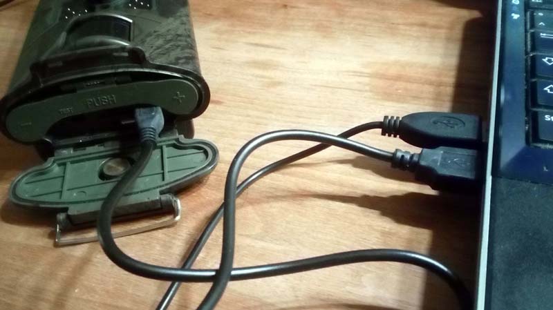 Die Wildkamera mit Hilfe des im Lieferumfang enthaltenen USB-Kabel an den PC anschließen und den Betriebsschalter auf die mittlere Stellung (Setup) stellen. Die Kamera baut jetzt eine Verbindung zu Ihrem Rechner auf und wird als Wechseldatenträger aufgeführt.