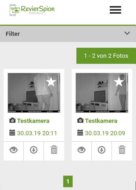 Wenn Sie diese Anleitung richtig befolgt haben, sollten die aufgenommenen Fotos der Seissiger Special-Cam 2G Wildkamera direkt auf die RevierSpion App übertragen werden. Stellen Sie den Betriebsschalter auf "ON" und stellen Sie die Kamera auf. Laufen Sie vor der Kamera her und warten ein paar Minuten. Haben Sie die RevierSpion App auf Ihrem Smartphone installiert, sollten Sie automatisch eine Benachrichtigung über ein neues Wildkamera-Foto bekommen. Kommt nichts an, kann es sein, dass die Wildkamera keinen Empfang hat, bitte den Standort wechseln. Kommen die Fotos an, können Sie die Fotofalle in Betrieb nehmen und in der Jagd oder zur Überwachung einsetzen.