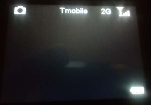 Über die Taste "Menu" das Menü wieder verlassen und kontrollieren ob die Wildkamera bereits Netz gefunden hat. Ansonsten den Betriebsschalter auf "OFF" und wieder auf "SET" stellen und warten bis die Kamera im Display einen Provider und die Signalstärke anzeigt. Dieser Vorgang kann einige Minuten dauern. Wird kein Netz gefunden, bitte den Standort wechseln und erneut probieren. In unserem Fall zeigt die Kamera den Provider "Tmobile" und drei Signalbalken an.