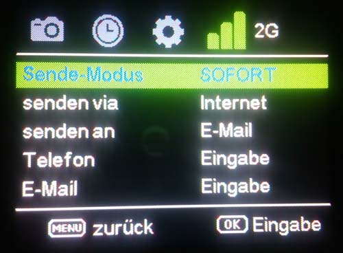 Ebenfalls im Menü "2G" befindet sich die Einstellung "Sende-Modus". Diesen auf "SOFORT" stellen und bestätigen.